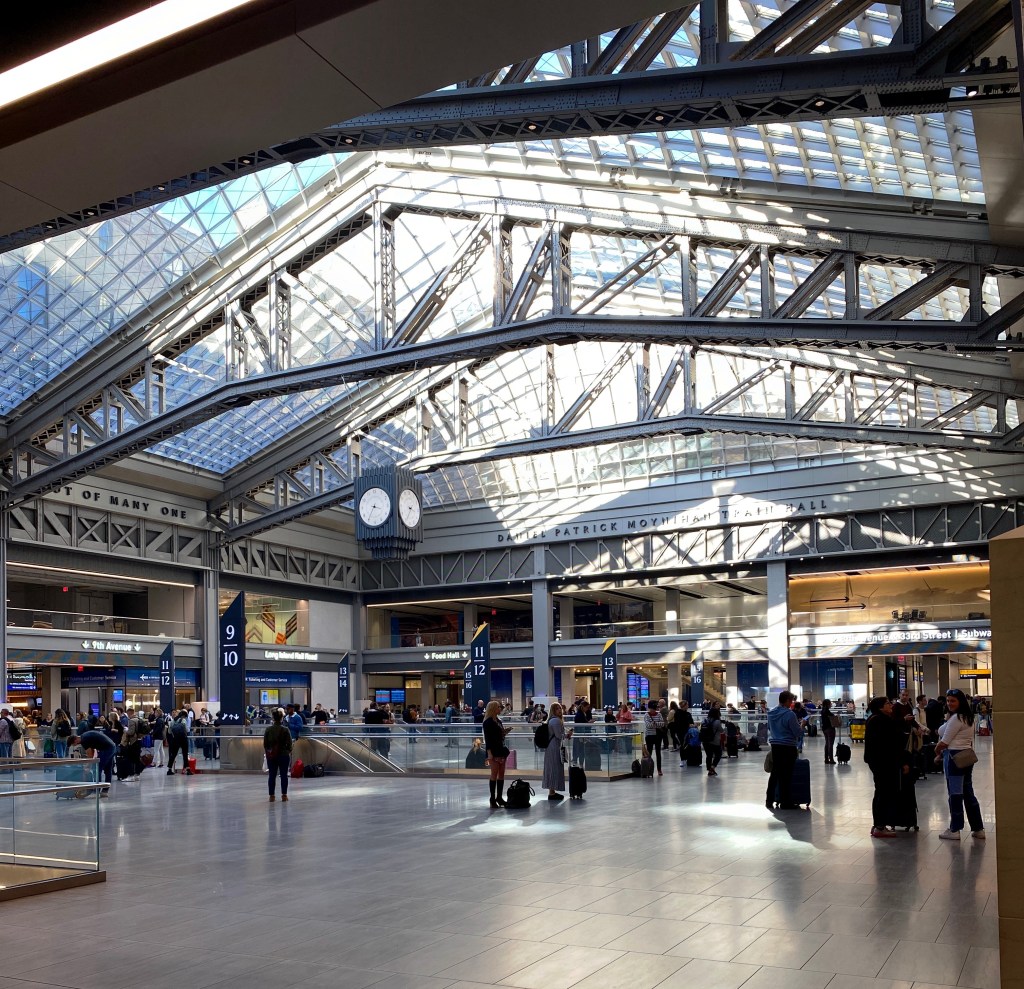The destruction of the old Penn Station in New York in 1963 was pure vandalism – this 1910 structure was modelled after the baths of Diocletian, and provided a suitable combination of steel construction and Roman-inspired grandeur for the golden age of train travel. The rabbit warren of the modern Penn Station that followed was basically just corridors leading to platforms. However, the recent repurposing of the old Post Office across the street has provided a new focus point to the station – it is called Moynihan Train Hall after the erstwhile politician (below). It has some echoes of the 1910 structure.