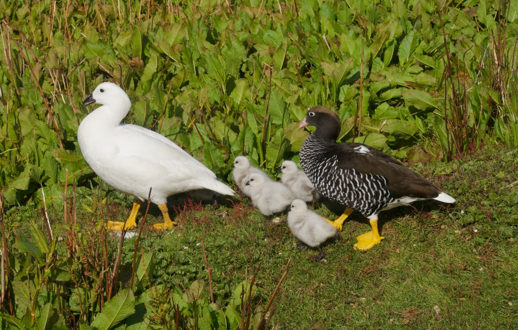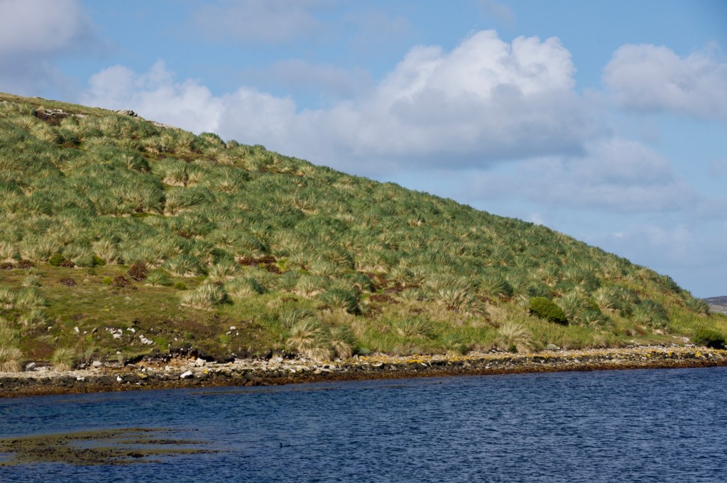 At the Northwestern part of the Falklands there is a small windswept island that houses a few humans (one farm) and plenty of birds. There are few trees, although the original vegetatlion (tussac grass, below) is slowly being reintroduced).