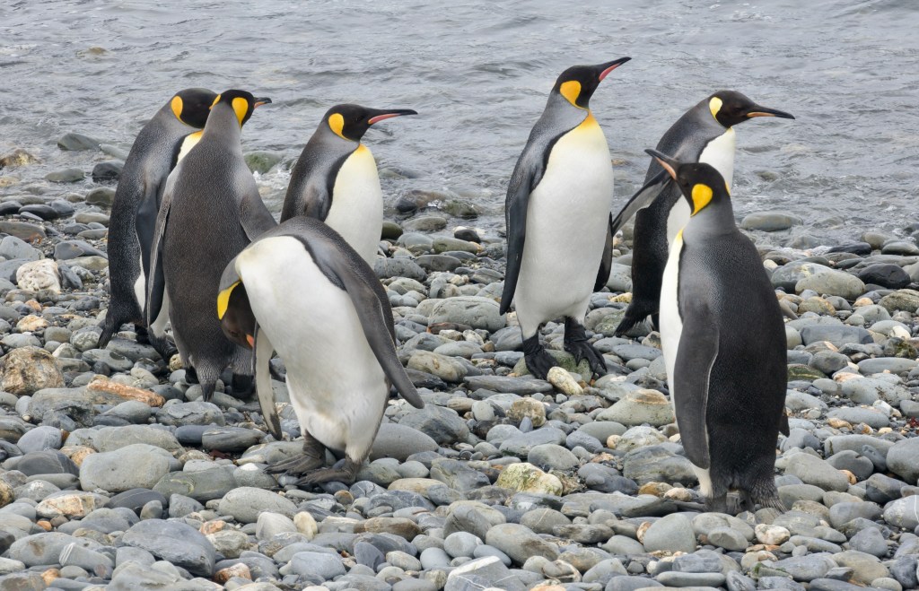 These days there is a royal reception committee consisting of king penguins (below left).