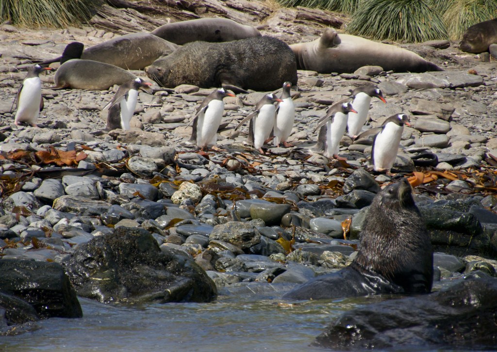 Godthul is a somewhat sheltered bay on the Northern coast of South Georgia. Until 1937 it hosted a whaling depot to keep some essentials. These days gentoo penguins, fur seals and elephant seals have the place to themselves, with giant petrels, sheathbills and Arctic terns flying around. Off the coastline humpback whales also enjoy the waters.