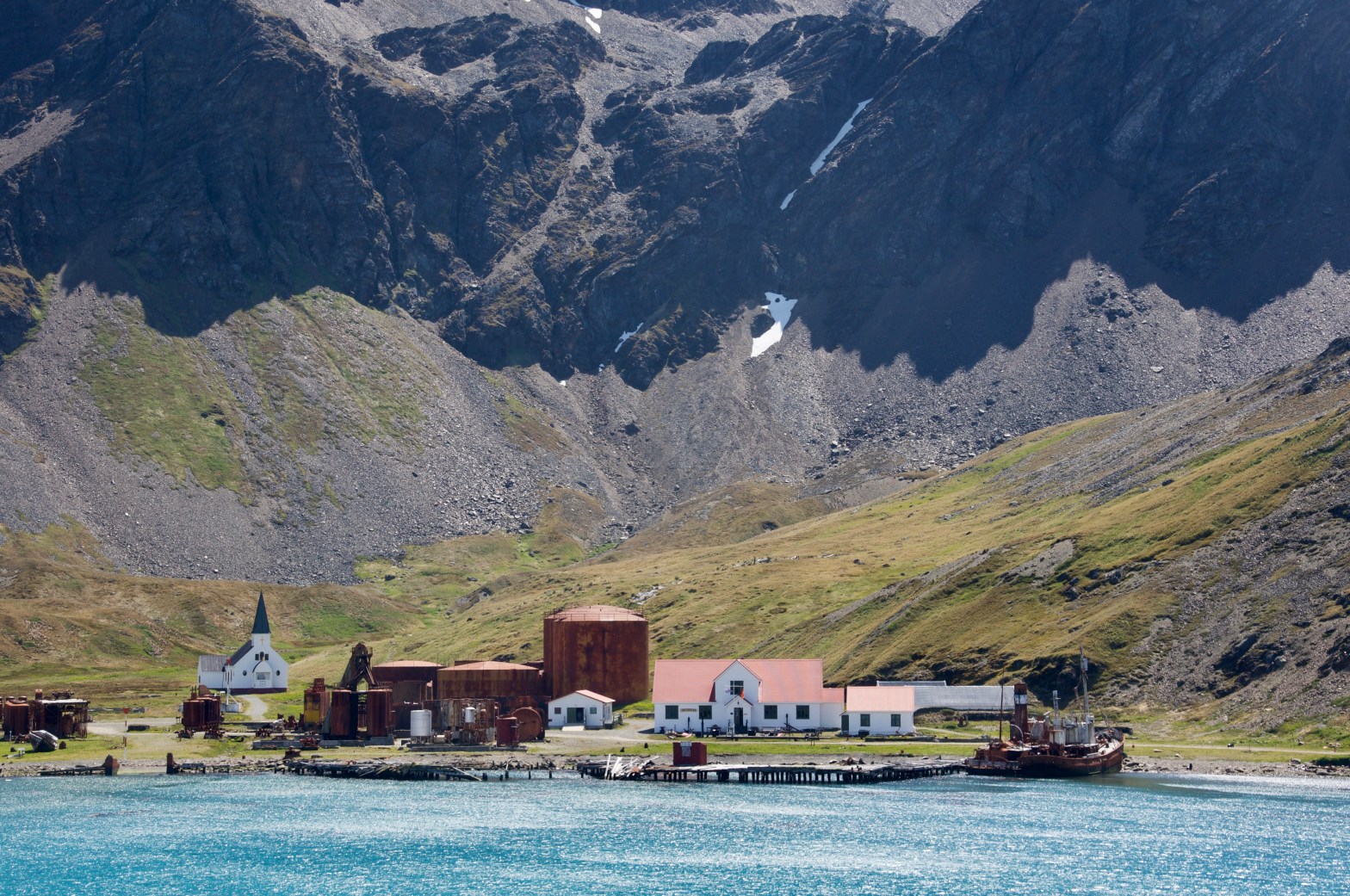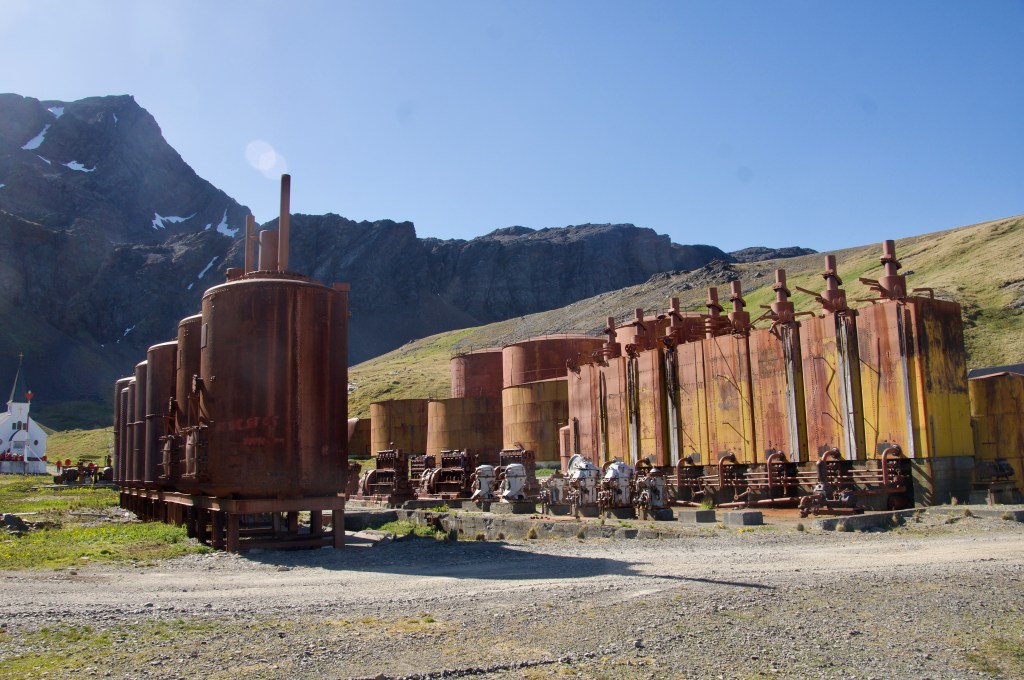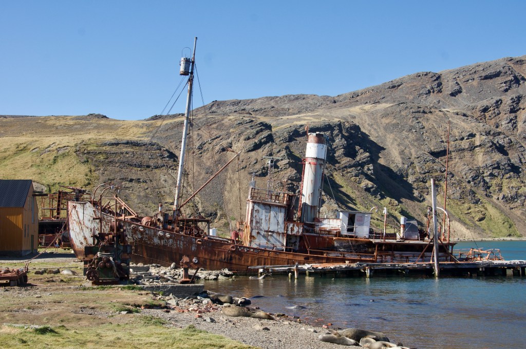 The rusting whale oil processing equipment, rotting ships, and prevalent seals create a post-industrial (if not post-apocalyptic) atmosphere that attracts cruise tourists.