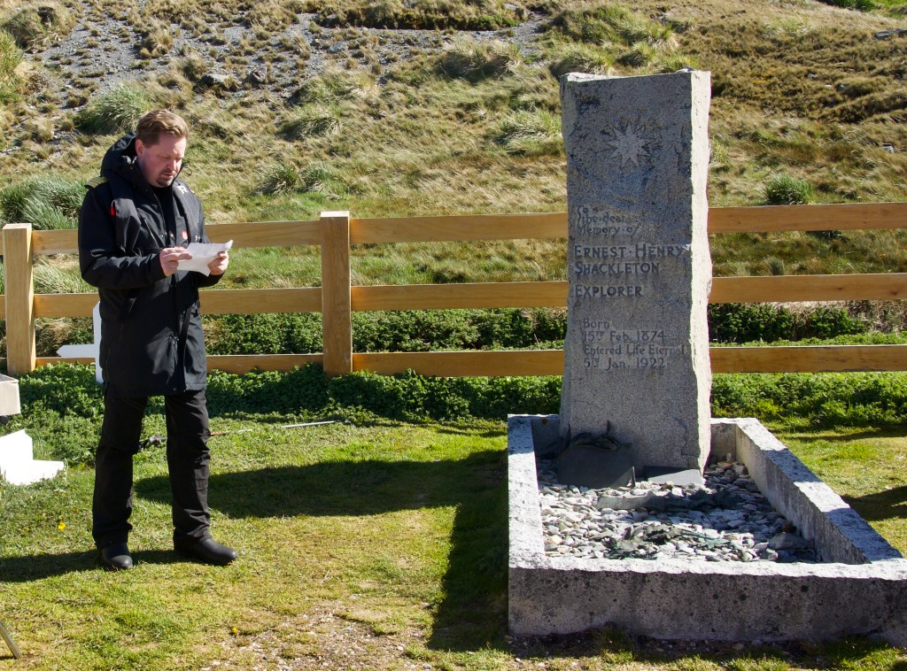 The story of Ernest Shackleton lives on, and the captain of m/v Fram offered all passengers a toast of Ballantines at the grevesite of Shackleton (below), who died of a heart attack at Grytviken onboard ‘Quest’ while on another Antarctic exploration in 1922.