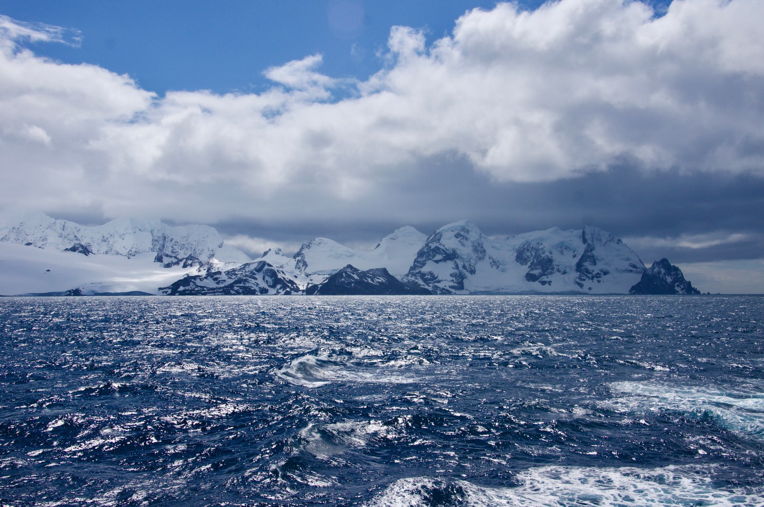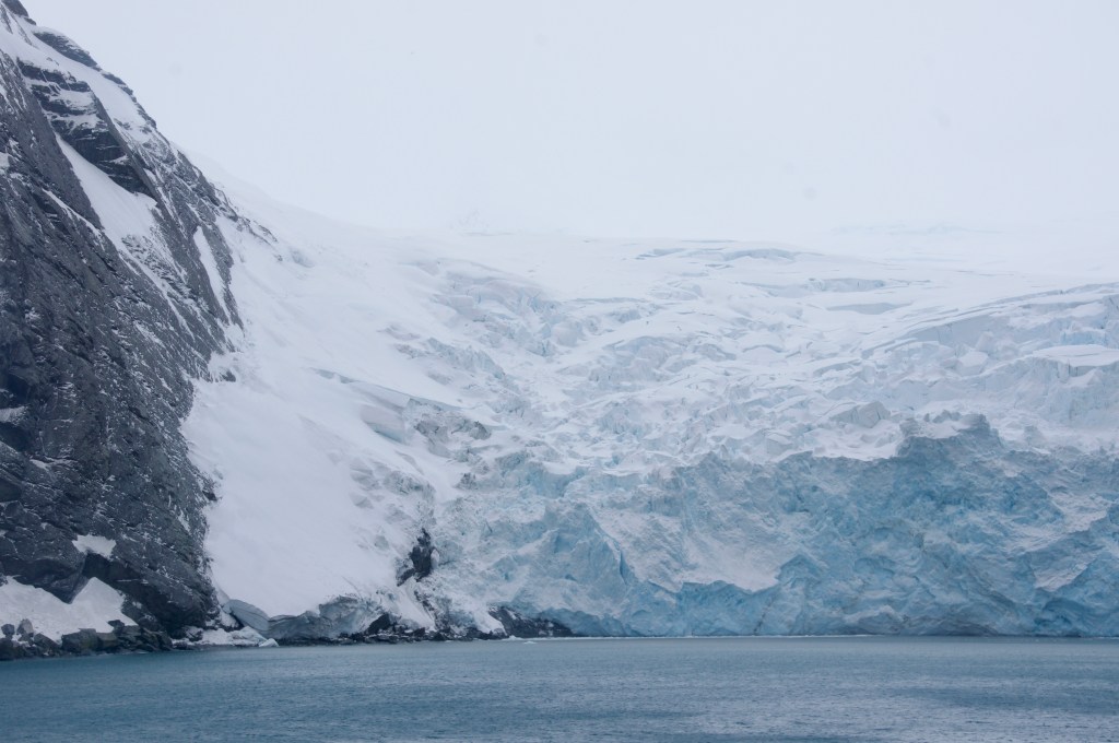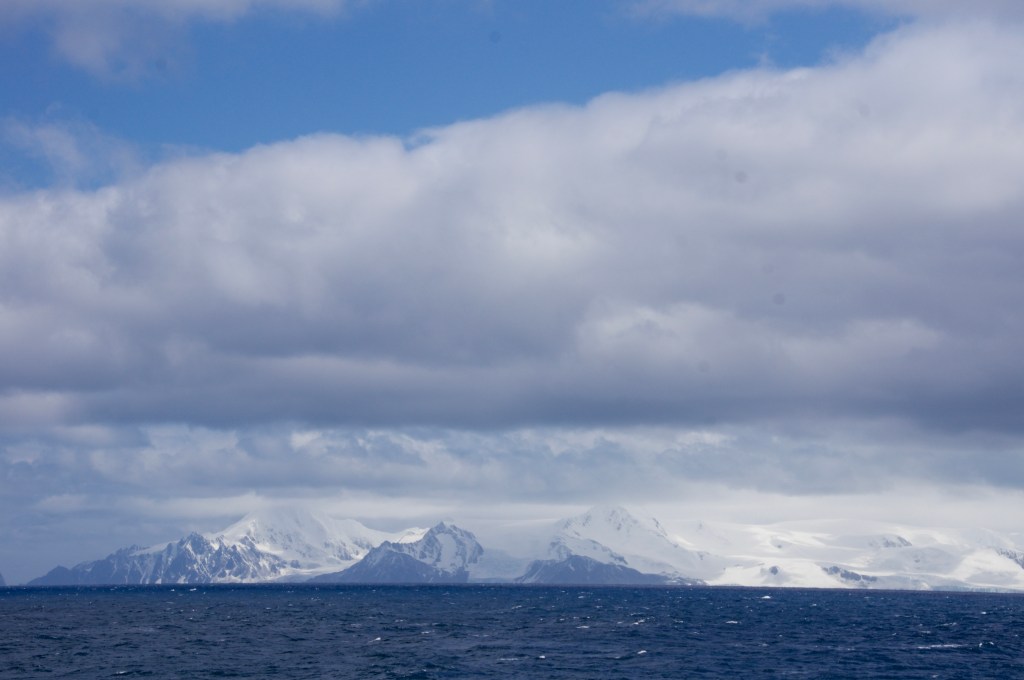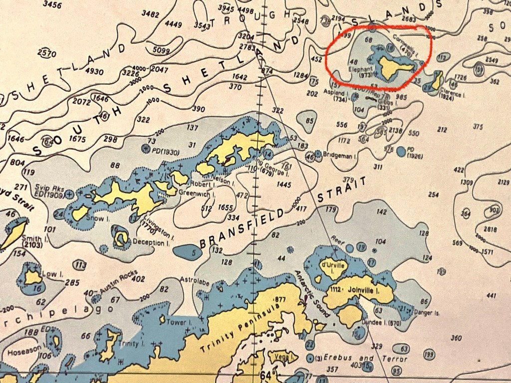 Elephant Island is covered by mountains, glaciers and snow. No humans here, but there are penguins (gentoos and chinstraps) and some seals. The island is named after elephant seals (or its form, or both).