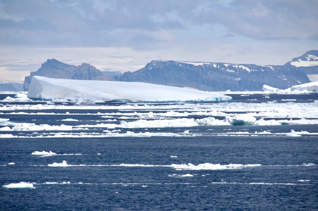 Antarctic Sound separates the continent from the island of Joinville. The sound is 56 km long and 13 – 22 km wide and has been nicknamed ’Iceberg Alley’ as numerous icebergs drift northwards through it.