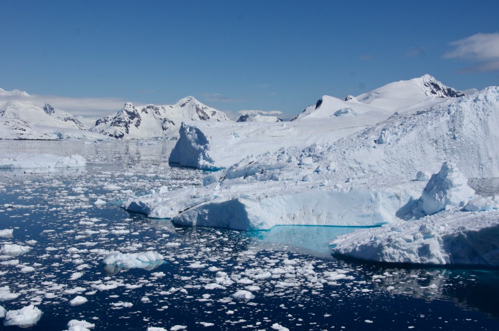 Both bays are surrounded by icy mountains with plentiful icebergs. There are both Argentinian and Chilean bases in this area.