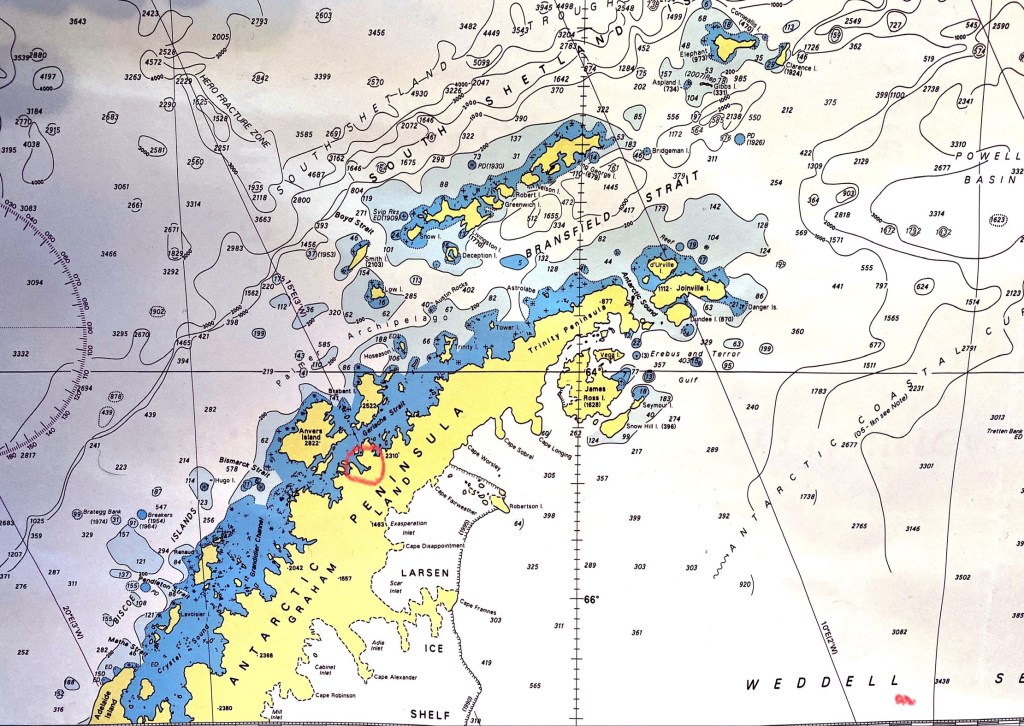 Andvord Bay (64° 50’ S, 62° 33’ W) on the Antarctic peninsula was again discovered by the Belgian Antarctic Expedition of 1897-1899 under Adrien de Gerlach. It was named after Rolf Andvord, the Belgian consul in Christiania (Oslo) at the time. The adjoining Paradise Bay was named by whalers around 1920.