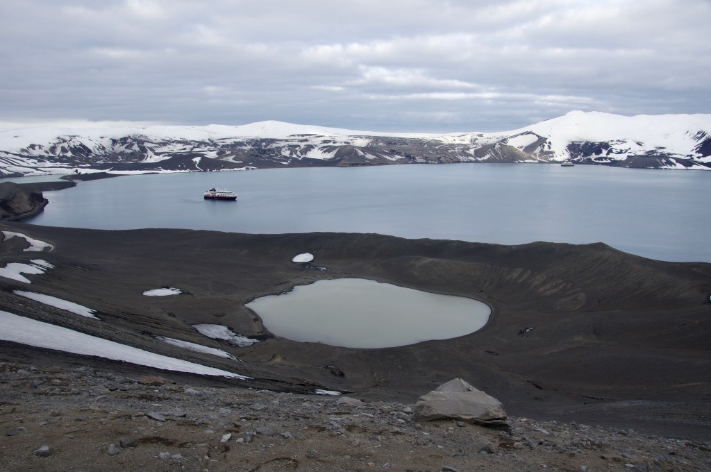 About 15 000 toursts visit the island every year – even the President of Argentina visited in 1961 to strengthen the claims of Argentina in this region. There were three cruise ships in the caldera at the same time (title image and below).