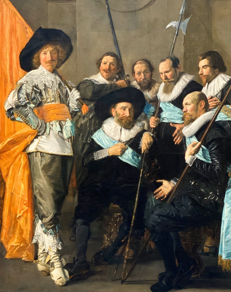 However, the guard members were busy people and at times it was difficult to get them to pose – once Hals demanded that an Amsterdam guard should come to his studio in Haarlem to finish their portrait (detail of Hals’s work above left). The guard refused and let another artist finish the painting in Amsterdam.
