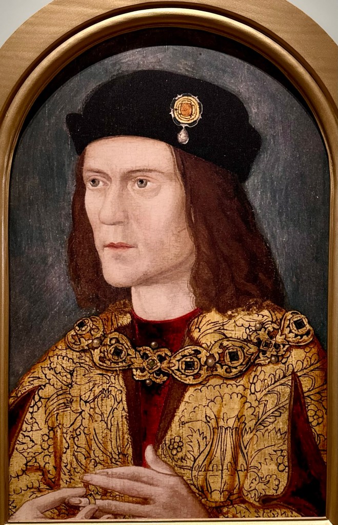 However, enterprising individuals were searching for his last resting place and finally in 2012 they succeded in finding a skeleton that was probably his. The remains had to go through carbon dating, battle trauma comparison, DNA analysis, and numerous other tests before the University of Leicester could declare that the remains were those of Richard, beyond reasonable doubt. They also reconstructed his face from the skull (above left), and established that the earliest contemporary paintings (above right) were reasonably accurate.