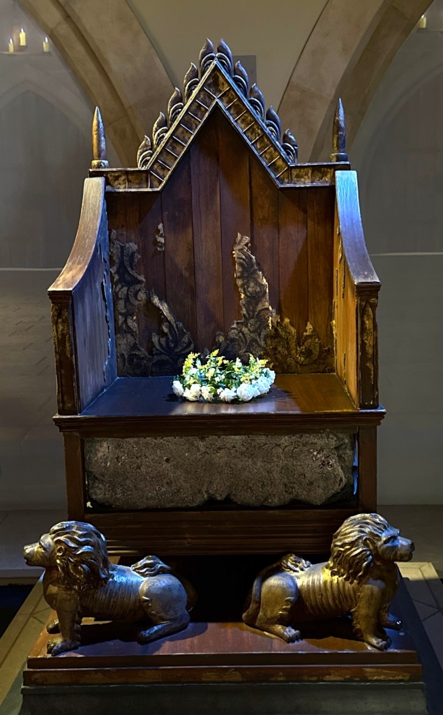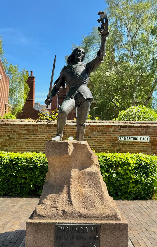 Thus, England got a royal burial in 2015, be it only a reburial, at the Leicester Cathedral (above, with the new tomb). Leicester has also built a whole ’Richard III Visitor Centre’ to tell the story of his life and death (with a mock throne, below left) – and naturally there is a heroic statue (below right), although the king has featured in the gallery of rogues at least since Shakespeare, who famously blamed him for the murder of the young sons of his predecessor in the London Tower.
