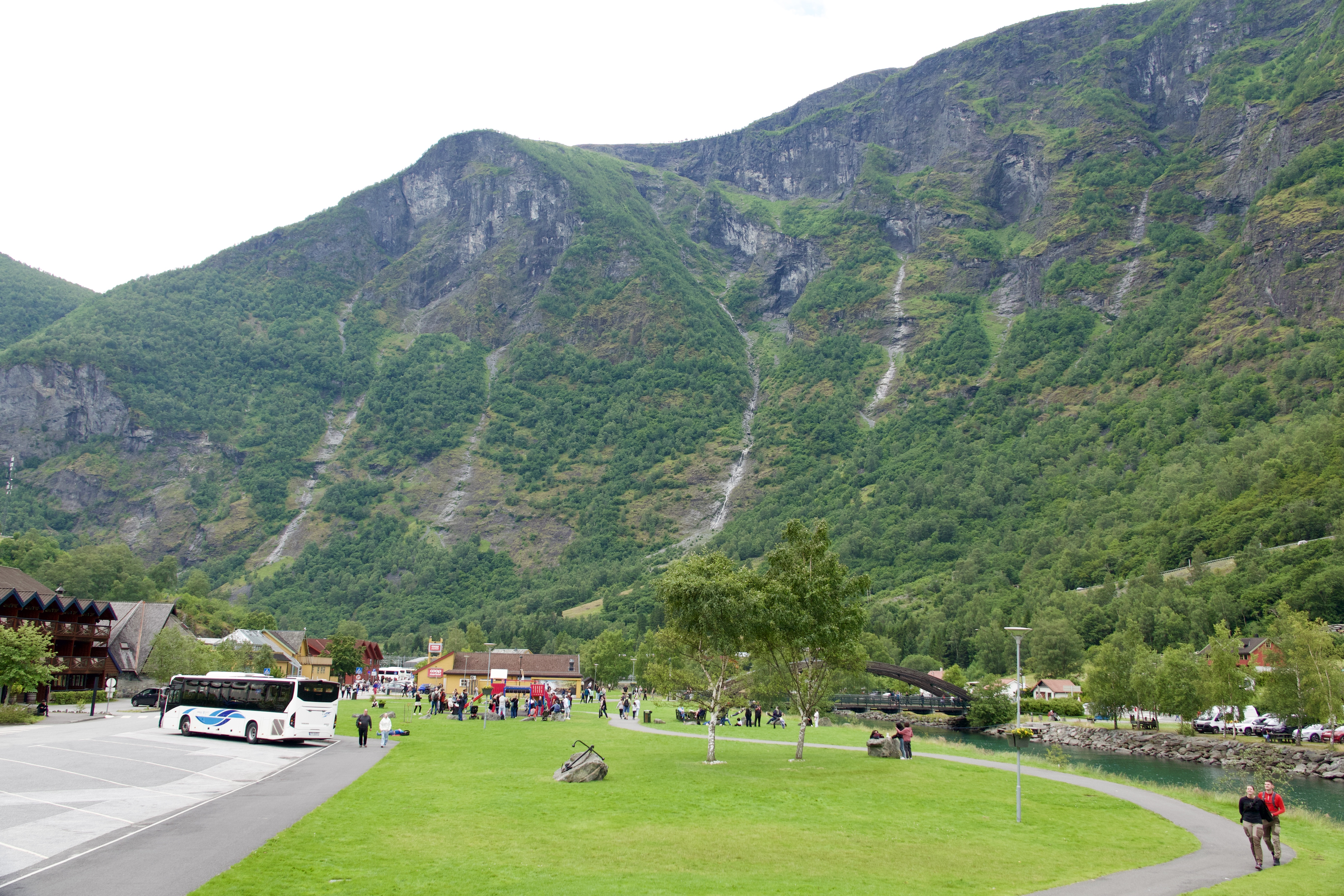 But tourists from all over come here for the rail trip. As Flåm is at the end of Songefjord (above left), it is accessible by huge cruise ships (above right), bringing their human cargo here. And the Norwegians (and others) use Flåm as a starting or ending point of their hike or bike trip (below two images of Flåm).