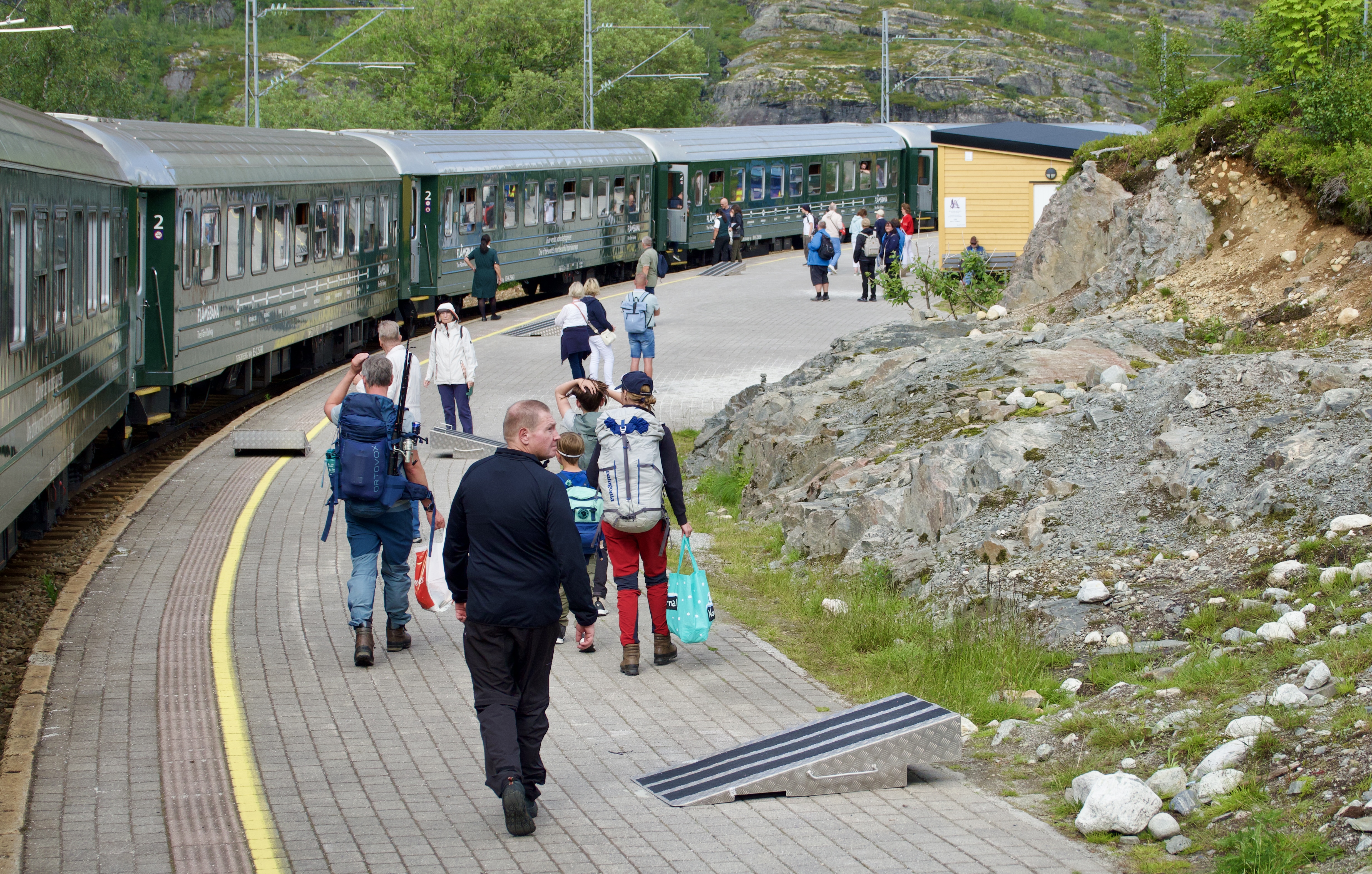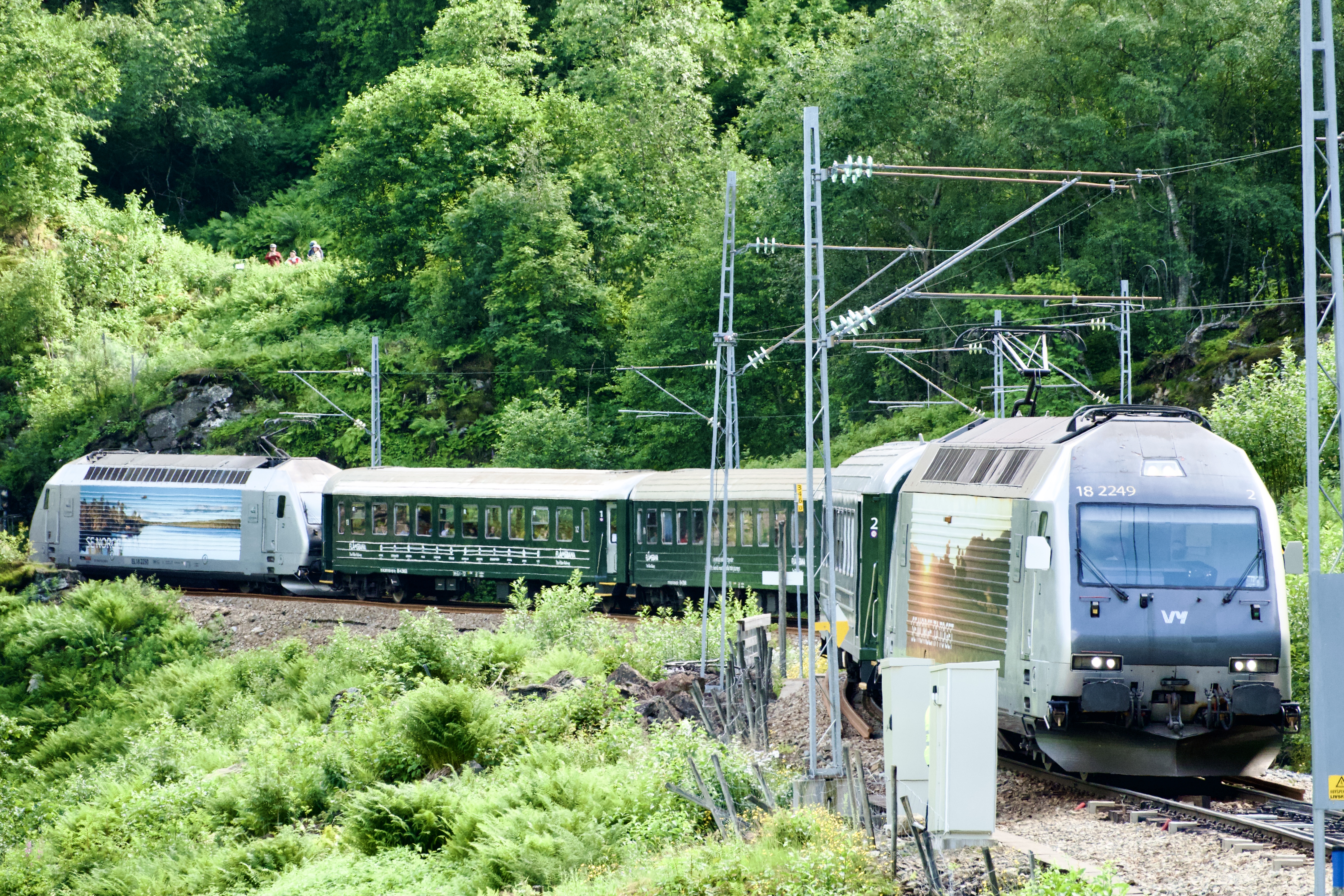 One of the well-known scenic stretches of track, the Flåmsbana between Myrdal and Flåm provides a quick descent from 867m to sea level over 20km in about an hour.