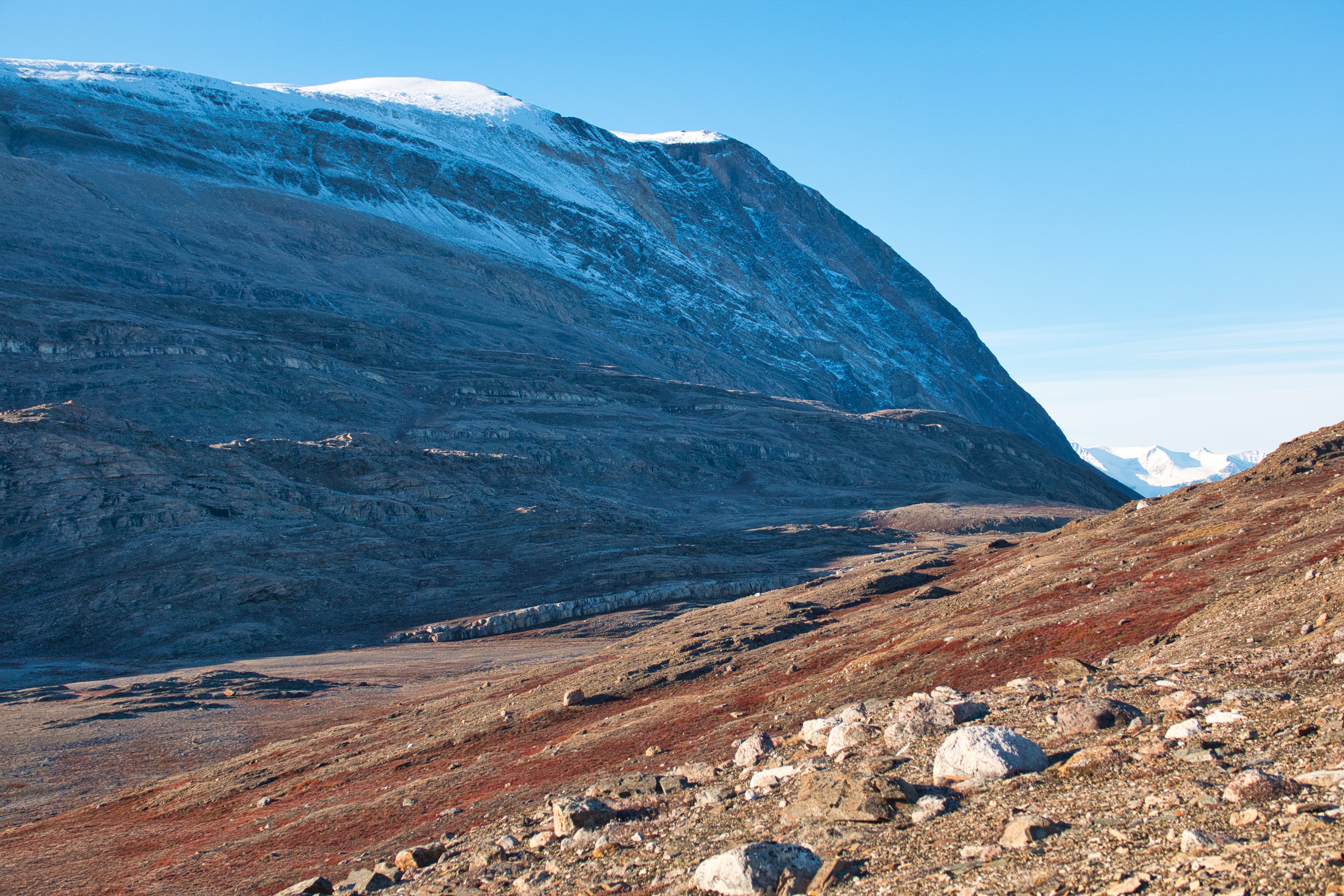 The Myggbukta is a bay in the larger Foster Bugt, getting its name from the wet coast that is optimal for mosquitoes in the summer. There is an old Norwegian weather station here, erected at the time when Norway tried to claim this part of Greenland.