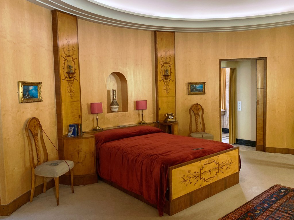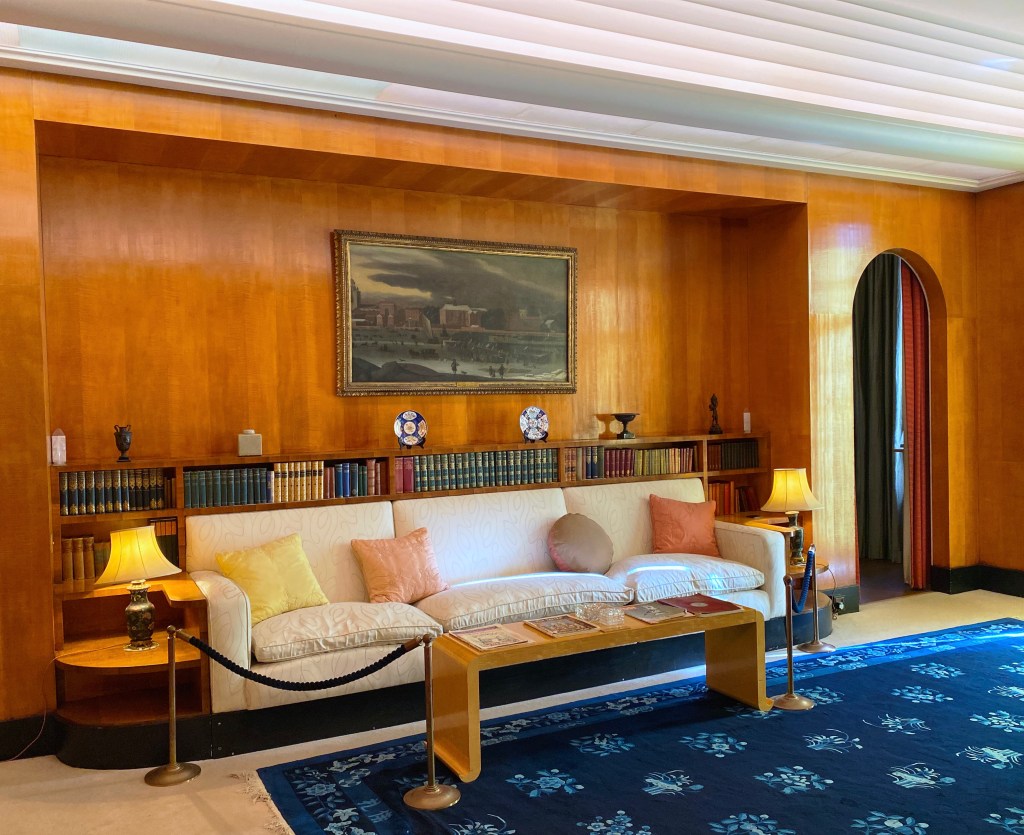 In the 1930s the inhabitants of the palace included a pet lemur called Mah-Jongg that must have delighted the servants by coming and going from its lair via the kitchen. The numerous guest bedrooms housed the great and good of the day, and the interior of the palace was also covered in ’Country Life’, including the bedroom (above left), her boudoir (above centre), and his study (above right). The Courtaulds left in 1944, and the Army used the Palace after that until the 1990s, when the National Trust took over.
