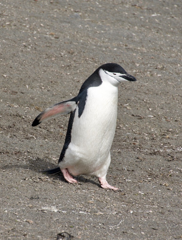The curiously named Aitcho Islands get their name from ’H.O.’, i.e. Hydrographic Office of the UK Admiralty who mapped them in 1935. These days the inhabtants are mostly gentoo and chinstrap penguins (below a chinstrap).